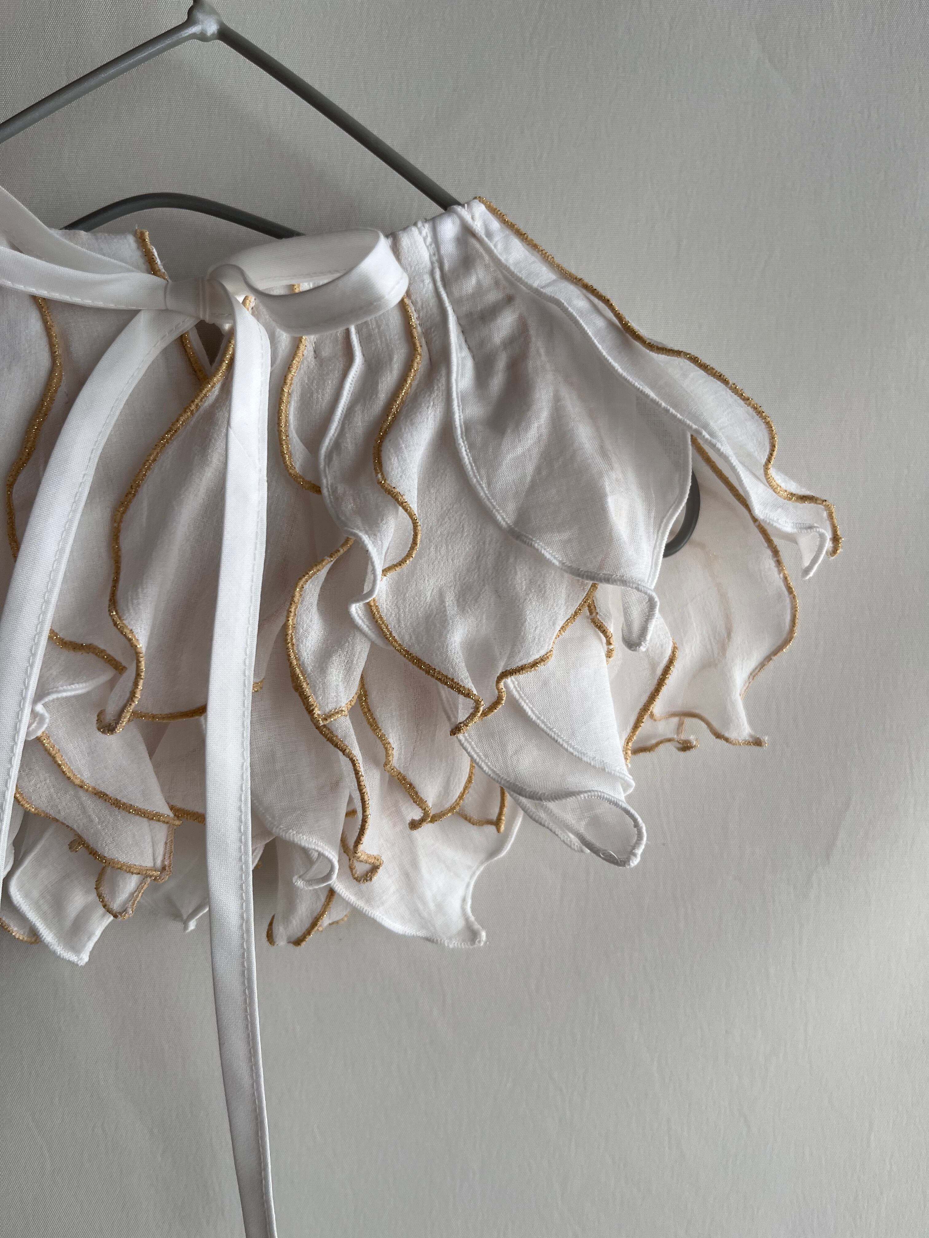 peonyは、まるでお花を首元に飾っているような印象のつけ襟。たくさんの花びらのモチーフ1つ1つバランスをみながら配置しております。